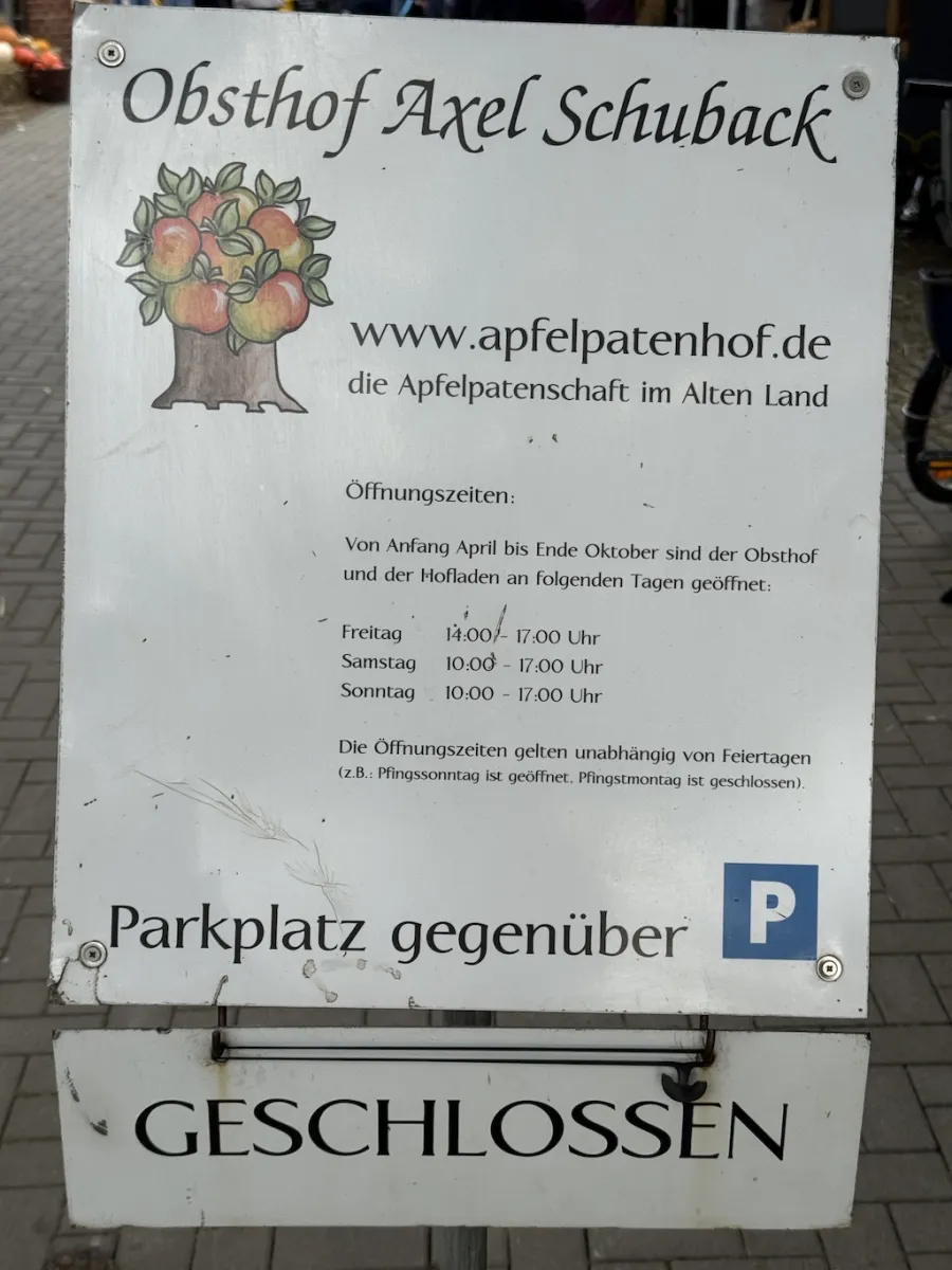 An den anderen Wochenenden ist unser Hofladen für alle geöffnet – Laufkundschaft ist also herzlich willkommen. Bitte beachte jedoch: Das Pflücken von Äpfeln ohne Patenschaft ist bei uns nicht möglich.