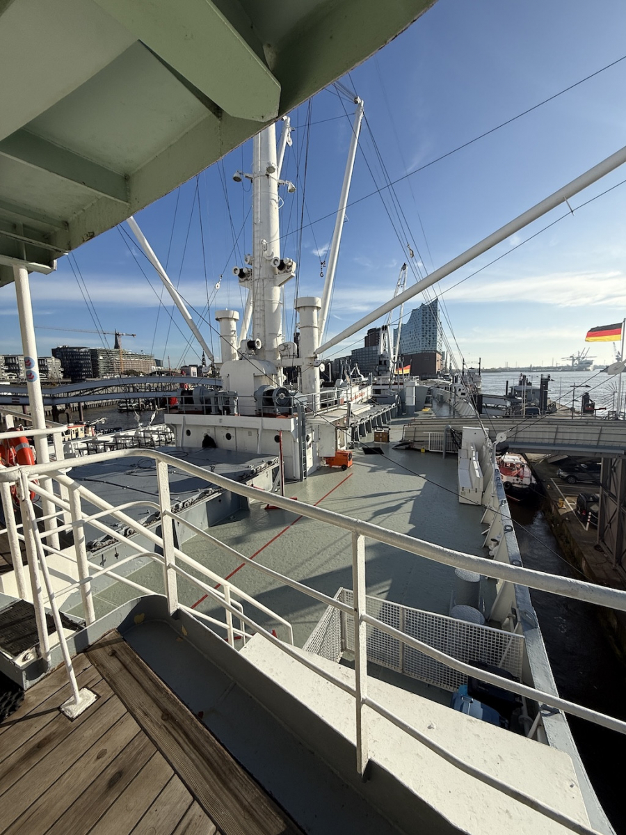 Das Schiff liegt zentral an der Überseebrücke, nur wenige Minuten von Landungsbrücken & Elphi entfernt.