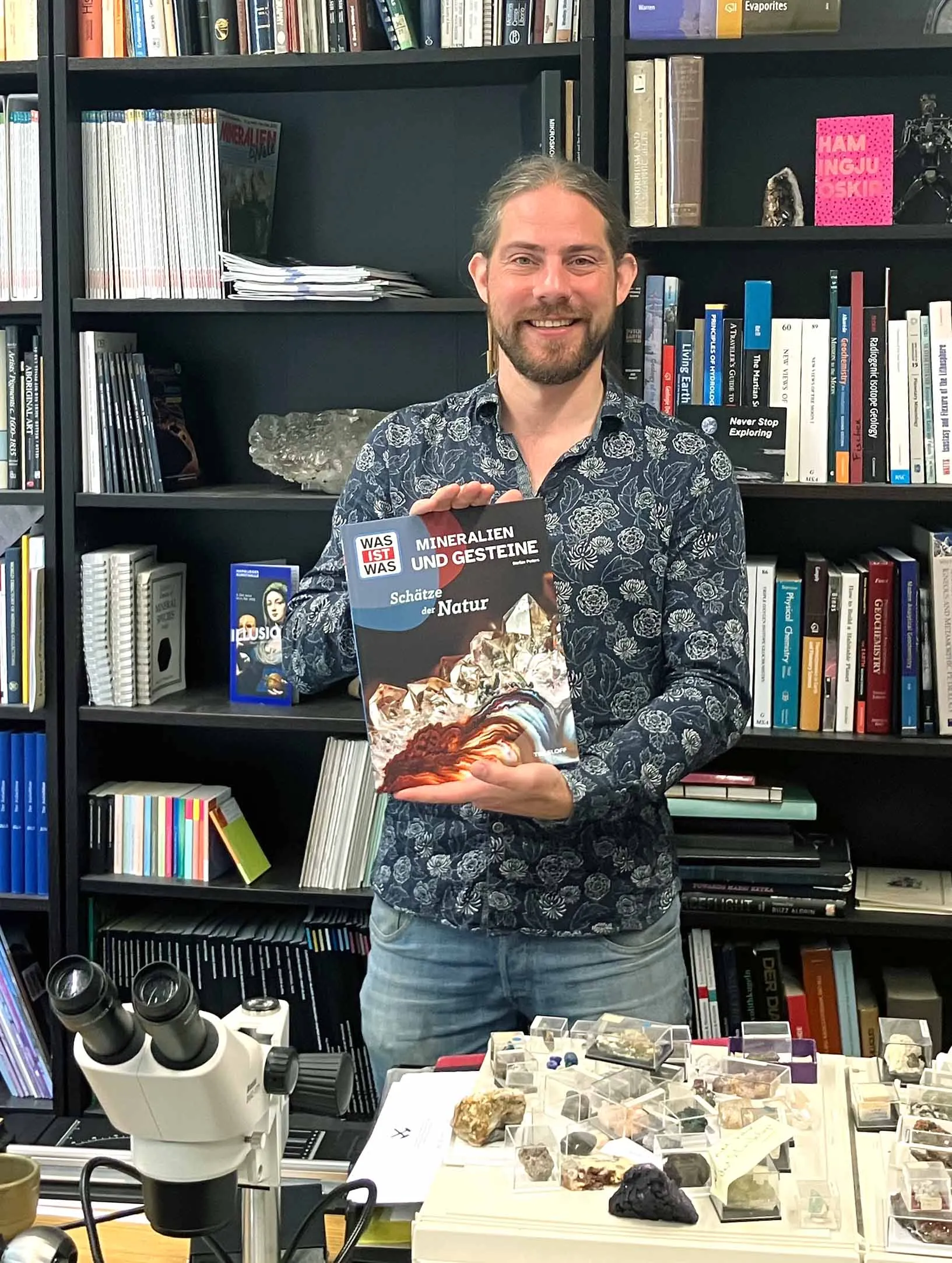 Funkelnde Edelsteine, geheimnisvolle Gesteine aus dem Weltall und Mineralien, die in Smartphones stecken – all das und noch viel mehr steht im Mittelpunkt, wenn Dr. Stefan Peters, Leiter der Mineralogie, aus seinem neuen Buch „WAS IST WAS: Mineralien und Gesteine – Schätze der Natur“ liest. Kurze Lesepassagen und ein lebendiger Vortrag vermitteln Einblicke in die Entstehung von Mineralien, die Vielfalt der Gesteine und die Besonderheiten seltener Rohstoffe. Im Anschluss werden Bücher signiert, Fundstücke von Expertinnen und Experten begutachtet und Mineralien sowie Gesteine aus dem Buch an Informationsstationen genauer vorgestellt. Der Nachmittag bietet darüber hinaus die Möglichkeit, sich weiter zu informieren, auszuprobieren und die mineralische Welt des Museums zu entdecken. Das Ende ist offen, sodass der Entdeckungsdrang noch ausgiebig ausgelebt werden kann. Mit spannenden Geschichten, eindrucksvollen Bildern und vielen Entdeckungsmomenten zeigt diese Veranstaltung die faszinierende Welt der Mineralien und Gesteine in all ihrer Vielfalt.
