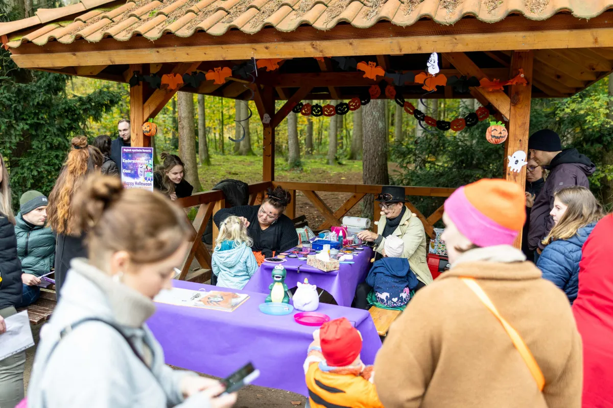 Ein Höhepunkt des Tages ist die magische Zaubershow, die mit verblüffenden Tricks und Illusionen kleine wie große Gäste begeistert. Kinder dürfen sich außerdem auf fantasievolle Halloween-Schminkaktionen freuen – ob Hexe, Geist oder Waldwesen, hier verwandelt sich jeder in seine liebste Spukgestalt. Musikalisch sorgt das SOS-Geisterorchester mit mystischen Klängen für die passende Gänsehautstimmung im Park.