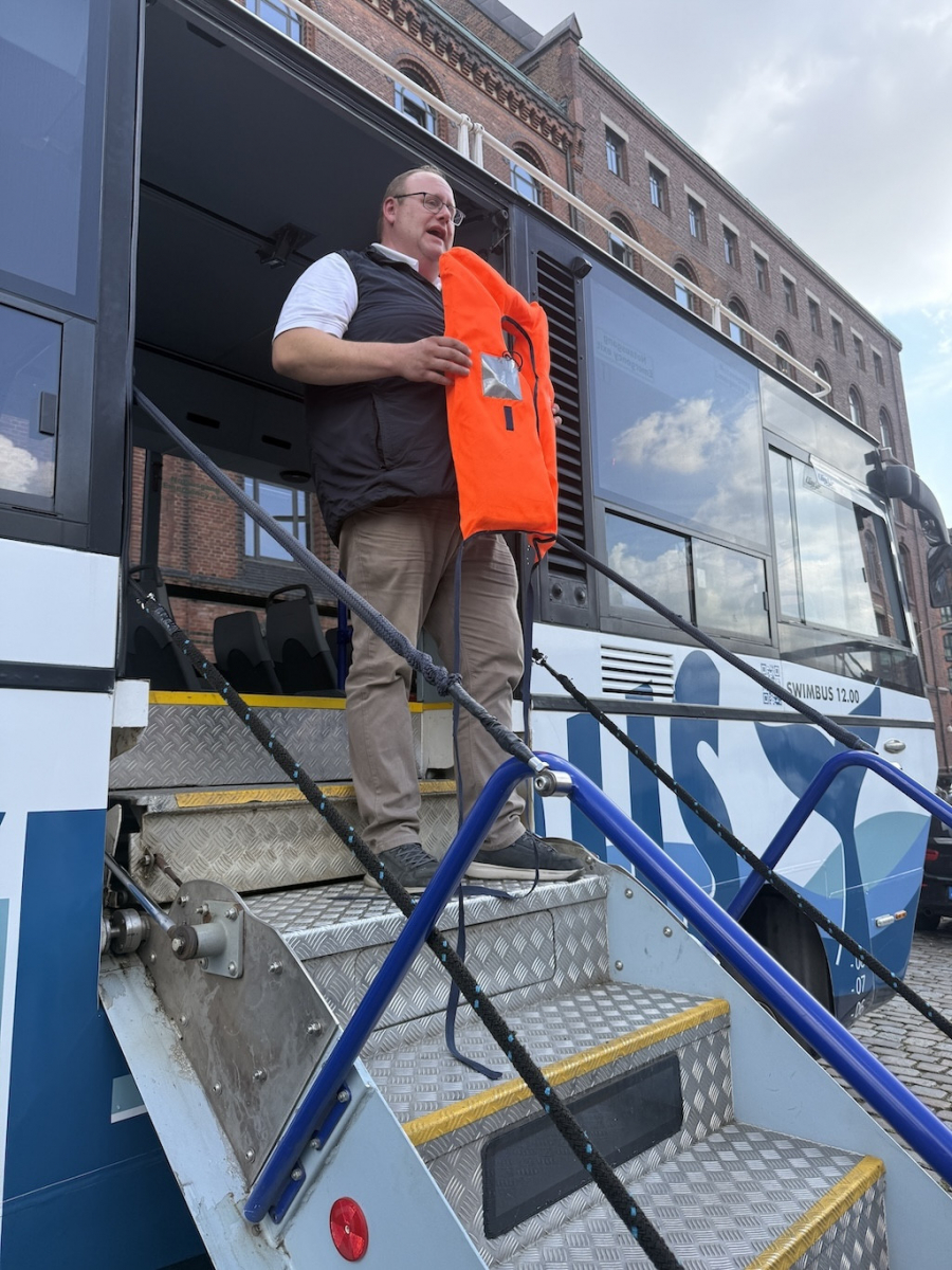 Schon der Anblick sorgt für Staunen bei Kindern: Ein riesiger Bus, der nicht nur auf der Straße fährt, sondern auch direkt ins Wasser gleitet. Mit lautem Jubel erleben die kleinen Passagiere den berühmten „Big Splash“, wenn der RiverBus von der Rampe in die Elbe eintaucht. Ein echtes Highlight, das jedes Kinderherz höherschlagen lässt.